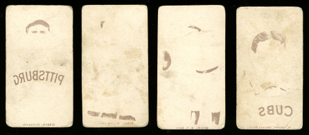 A group of four blank-back printers-scrap cards. Each of these cards has the same brown-color pass on the back as on the front. The image on the back is a reverse of that on the front and includes the player's name and team caption. Though a few other cards like these have come to market over the years, they are extremely scarce.