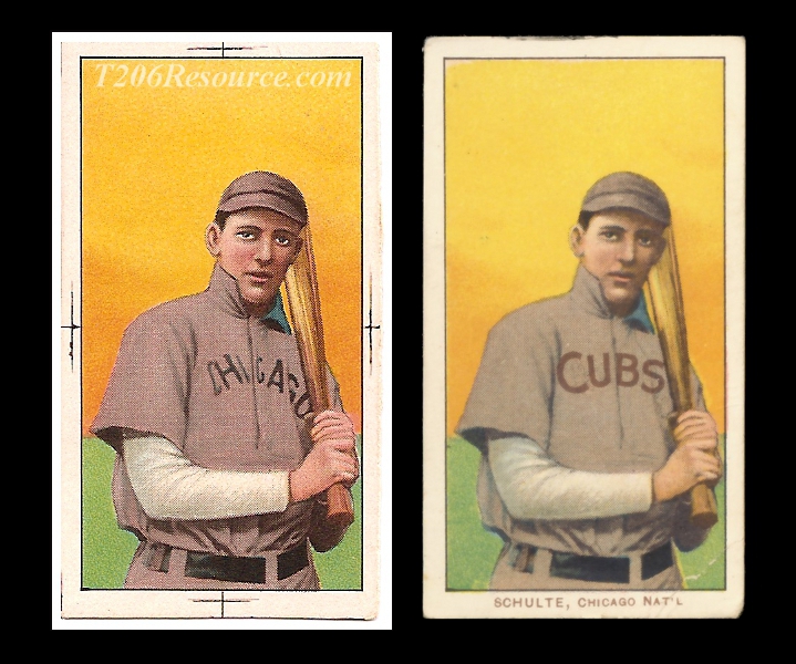 The Schulte proof is a great example of a definitive artwork change prior to production. This Type 1 proof of Schulte has CHICAGO across the chest, but the artwork was changed so the production image has CUBS written across the chest.