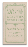 During the production of groups 1 and 2, the Sovereign 350 back was printed in a forest green color. The later printing of group 3 with the same back was printed in an apple green color. This subtle color change clearly defines which subjects are in group 2 and which are in group 3. Only three of the group 3 subjects cannot be found with an apple green Sovereign 350 back. The Joe Doyle (N.Y. Nat'l) error, which was corrected prior to the Sovereign print run, and the later team changes for Red Kleinow (Boston) and Frank Smith (Chicago & Boston), which took place after the Sovereign printing.