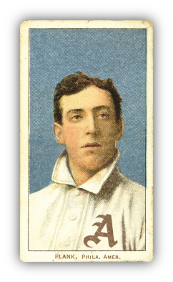 Though not as scarce as the T206 Wagner, the mystery surrounding the Eddie Plank card has been even more confounding to collectors for the past 100 years. Unlike Wagner, the Plank card was printed with backs from both the 150 and 350 series. In the past, collectors have theorized that a printing plate was broken, explaining what was thought to be an extended period of time between printings. Others have thought that the Plank card was discontinued at one point and then reinstated. A careful examination of how the set was composed will show that neither is the case.
