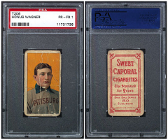 Some cards have more than one image in this gallery. A letter will follow the number in these examples to note that more than one image of the same card is being used (1a and 1b, as an example). There are a few possible reasons for this: a card first was sold raw and then graded; a card was crossed from one TPG's holder to another; or to show a card before and after restoration.
